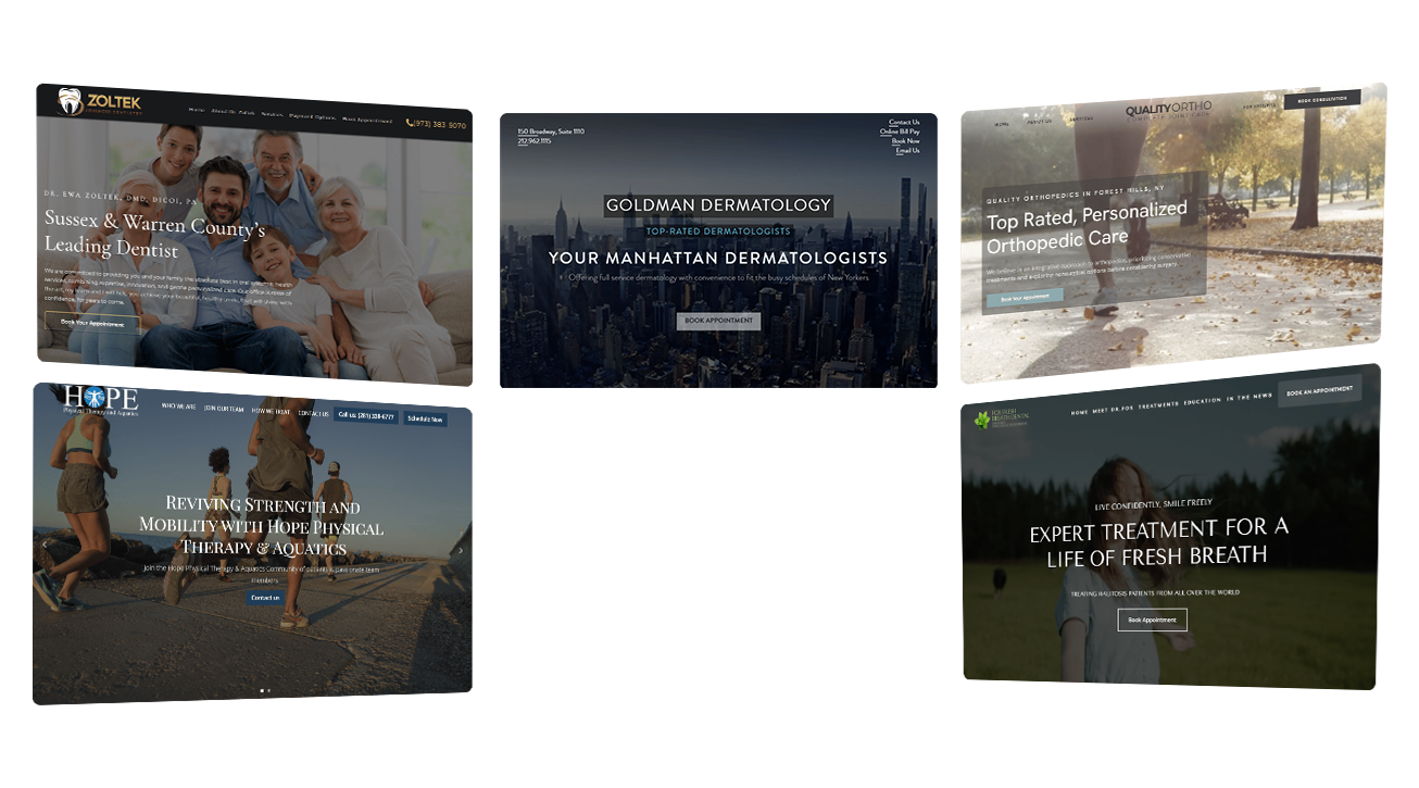 Discover why practice owners are raving about our work. Our design team is the best in the business, and we'll build you an incredible web presence that will help you stand out and see more patients.